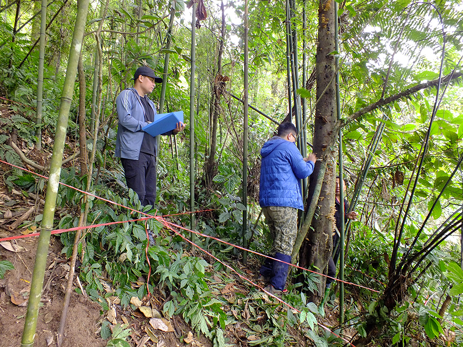 Watershed forest in Quan Ba District, Ha Giang province habours the second largest population of Tonkin Snub-nosed Monkey (TSM). However, this population is facing with high danger of extinction. One of the most significant threats to the population is a habitat degradation and disturbance by local residents (Nguyen Xuan Dang et al. 2019). During 2019 -2023, CeREC carried out various field studies in the area to understand the habitat features and to assess key threats to the habitat. These data will be used as a scientific basis for the habitat protection and the conservation of TSM population in this area. This study used two main survey methods: Line transects and sampling plots (Picture 1)