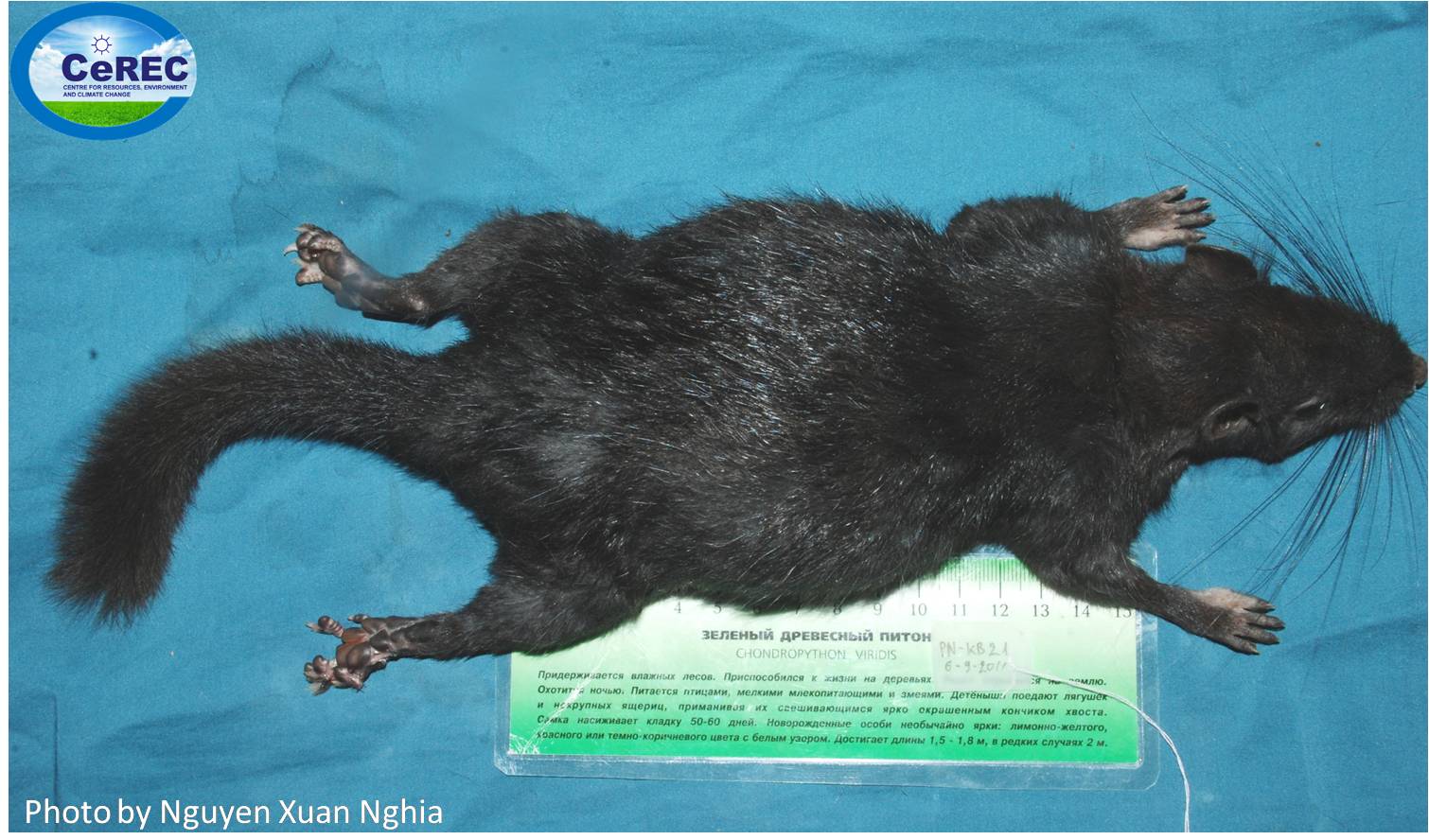 In August 2011, a group of Vietnamese scientists inluding 2 CeREC scientists (Ass. Prof. Dr. Nguyen Xuan Dang and Mr. Nguyen Xuan Nghia), Dr. Nguyen Manh Ha from National University of Hanoi and Mr. Nguyen Duy Luong from Fauna & Flora International) conducted small mammal survey in expanded area of the Phong Nha - Ke Bang National Park, belonging to Thuong Hoa Commune, Minh Hoa District, Quang Binh Province. During this survey we could collect 4 specimens of unknown mammal taxon (local ethnic people call them as kne-coung). Based on their external morphological features, we temporarily considered them as Laotian Rock Rat (Laonestes aenigmamus) and gave it Vietnamese name as "Truong Son Rock Rat".