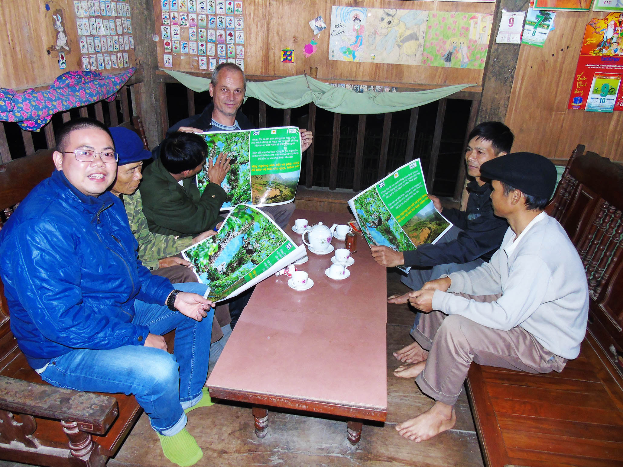 Director of Ostrava Zoo (Mr. Petr Čolas) joined distribution of TSM conservation poster during his visit to Khau Ca TSM conservation Area in November 2016. Giám đốc Vườn thú Ostrava Zoo (ngài Petr Čolas) tham gia phát apphích bảo tồn VMH cho người dân địa phương tại Tùng Bà, Hà Giang thành 11/2016